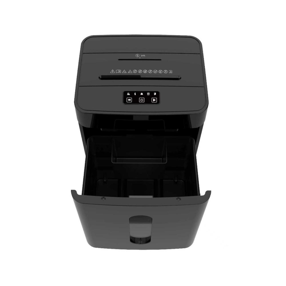 Предназначен для уничтожения бумаги со скобами, компакт-дисков и пластиковых карт (отдельными ножами в отдельном слоте). Высокая P-5 степень секретности, размер фрагментов: 2,5x12 мм. За один проход уничтожает до 9 листов формата А4 (70гр/м), до 8 листов бумаги (80 гр/м). Шредер имеет защиту двигателя от перегрева, отключаемый датчик переполнения корзины, автореверс при заторе и систему автоочистки ножей (каждые 50 проходов уничтожения шредер автоматически запускает 3 цикла REV/FOR по 5 сек каждый), что очищает ножи от остатков бумаги и продляет срок службы устройства. Оснащен корзиной с полным съемом объемом 25 л. Для удобства перемещения оснащен колёсиками. TPPS EFM208D Невероятно тихий, уровень шума - 40дб (для справки: «шумными» называют шредеры с уровнем выше 70 дб, модели с шумом ниже 60 дб считаются «бесшумными»). Таким образом, уничтожая документы, вы не будете беспокоить коллег или мешать телефонным разговорам. Гарантийный срок - 1 год.