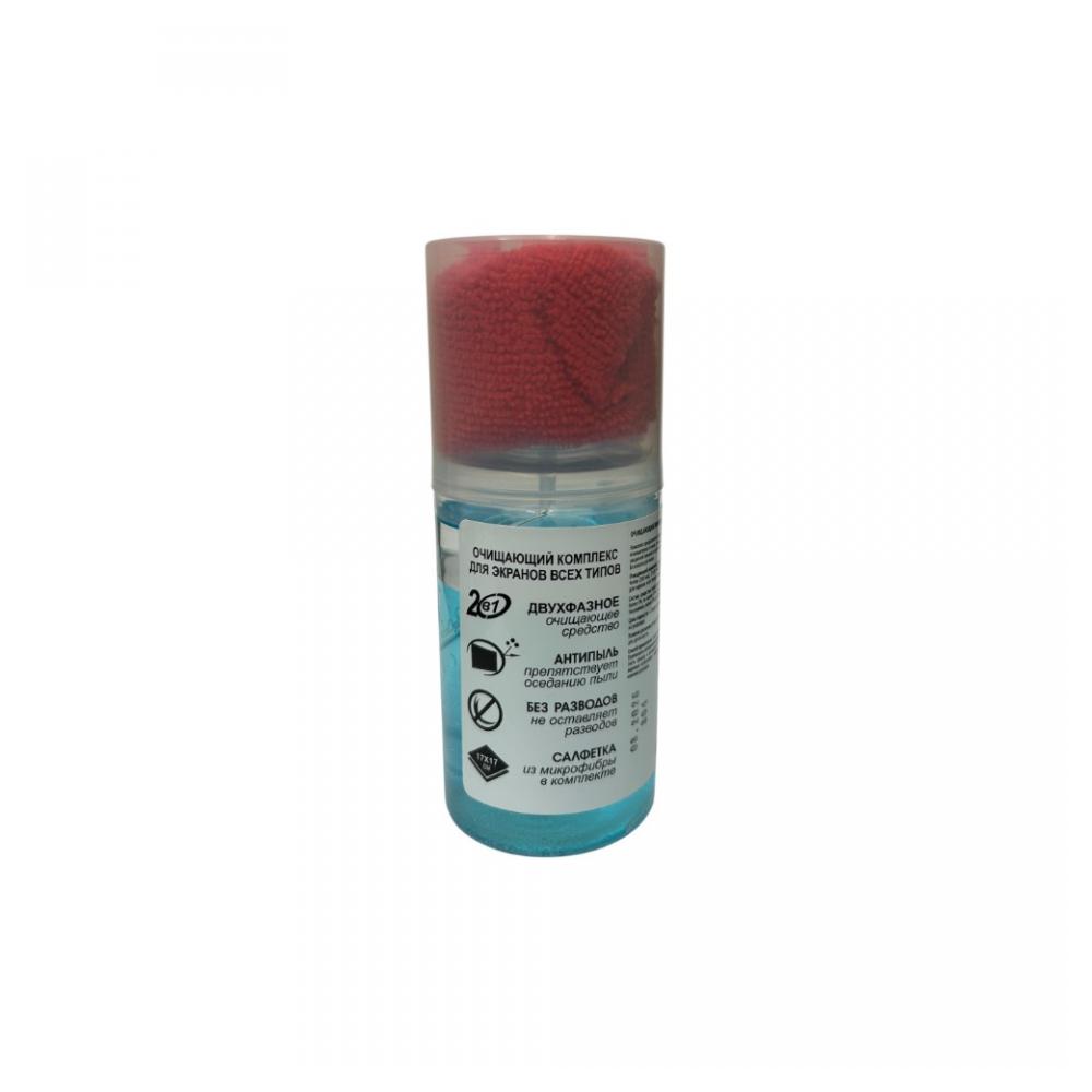 ОЧИЩАЮЩИЙ КОМПЛЕКС ДЛЯ ЭКРАНОВ ВСЕХ ТИПОВ! Комплекс предназначен для ухода и очистки экранов ноутбуков, мониторов, телевизоров, планшетов, компьютеров от пыли, грязи, отпечатков пальцев и жировых разводов. Покрывает поверхность защитной пленкой и освежает цвет. Может использоваться для пластиковых поверхностей оргтехники. Безопасно для кожи. Очищающий комплекс для экранов всех типов включает: средство очищающее для экран типов (200 мл), ТУ BY 590831259.003-2013, РЦ BY 590831259.010-2018 + салфетка из микрофибры для экранов всех типов, стекол и зеркал (1 шт.), ТУ ВY 590831259.004-2015. Состав очищающего средства: Вода - более 30% Циклогексасилоксан - более 5%, но менее 15% Циклопентасилоксан - менее 5% Метилхлоризотиазолинон - менее 5% Метилизотиазолинон - менее 5% Краситель - менее 5% Срок годности - 2 года с даты изготовления. Дата изготовления (месяц, год) и номер парти указан на упаковке. Условия хранения: в крытых помещениях при температуре от 0°С до плюс 25°С. Хранить в недоступном для детей месте. Способ применения: очистку рекомендуется проводить в холодном (выключенном) состоянии устройства. Перемешать несколькими круговыми движениями до получения однородного цвета. Сильно не взбалтывать. Снять крышку и распылить на часть салфетки. Круговыми движениями от центра к периферии убрать видимые загрязнения с поверхности. Отполировать поверхность сухой чистой стороной салфетки до исчезновения разводов.