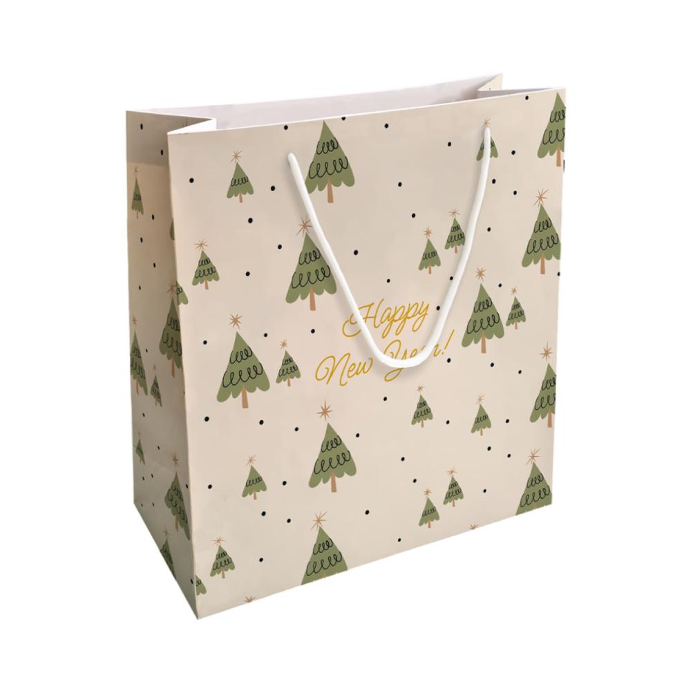Подарочный пакет с новогодней тематикой — это стильное и практичное решение для оформления праздничного презента. Изготовленный из плотного картона толщиной 200 г/м², он отличается высокой прочностью и устойчивостью к повреждениям. Матовая ламинация придаёт поверхности элегантный вид, защищает от влаги и делает пакет приятным на ощупь. Размеры 32×32×12 см позволяют разместить в нём как компактные, так и более объёмные подарки, а усиленное дно с подгибкой обеспечивает дополнительную жёсткость и устойчивость. Удобные верёвочные ручки надёжно закреплены и выдерживают нагрузку до 3–4 кг, что делает пакет подходящим даже для тяжёлых презентов. Оформление в духе Нового года создаёт атмосферу праздника, добавляя волшебства каждому подарку.