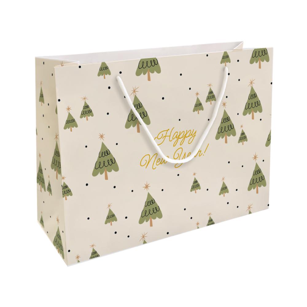 Подарочный пакет с новогодней тематикой — это стильное и надёжное решение для оформления праздничного презента. Он изготовлен из плотного картона толщиной 200 г/м², что обеспечивает прочность и устойчивость к повреждениям. Матовая ламинация придаёт поверхности элегантный вид, защищает от влаги и делает пакет приятным на ощупь. Размеры 36×26 см с глубиной 12 см позволяют удобно разместить как компактные, так и более объёмные подарки. Усиленное дно с подгибкой обеспечивает дополнительную жёсткость, а прочные верёвочные ручки гарантируют комфортную переноску. Пакет выдерживает нагрузку до 3–4 кг, идеально подходя для праздничных сюрпризов. Яркий новогодний дизайн создаёт атмосферу уюта и волшебства, делая каждый подарок особенно запоминающимся.