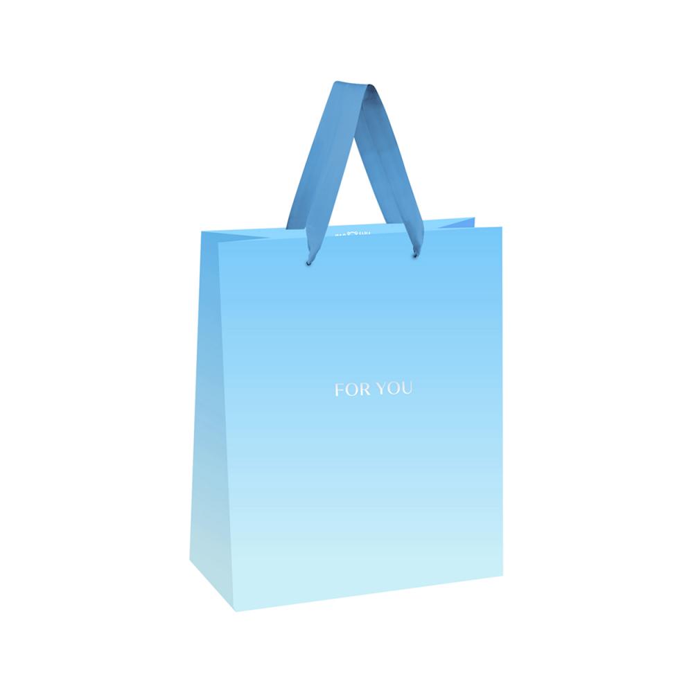 Подарочный пакет MESHU «For you. Blue» поможет превратить ваш подарок в яркий и запоминающийся сюрприз. Изделие компактного размера 11×14×6,5 см изготовлено из плотного мелованного картона. Эксклюзивный дизайн разработан специально для бренда MESHU, а высокое качество печати обеспечивает сочность и выразительность рисунка. Отделка дополнена матовой ламинацией и изящным фольгированием. Прочные ленточные ручки отличаются насыщенным цветом и долговечностью.