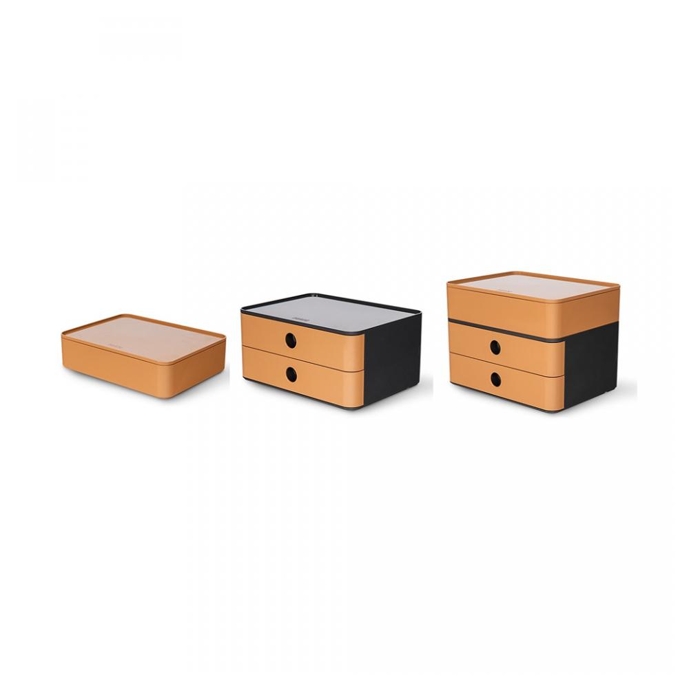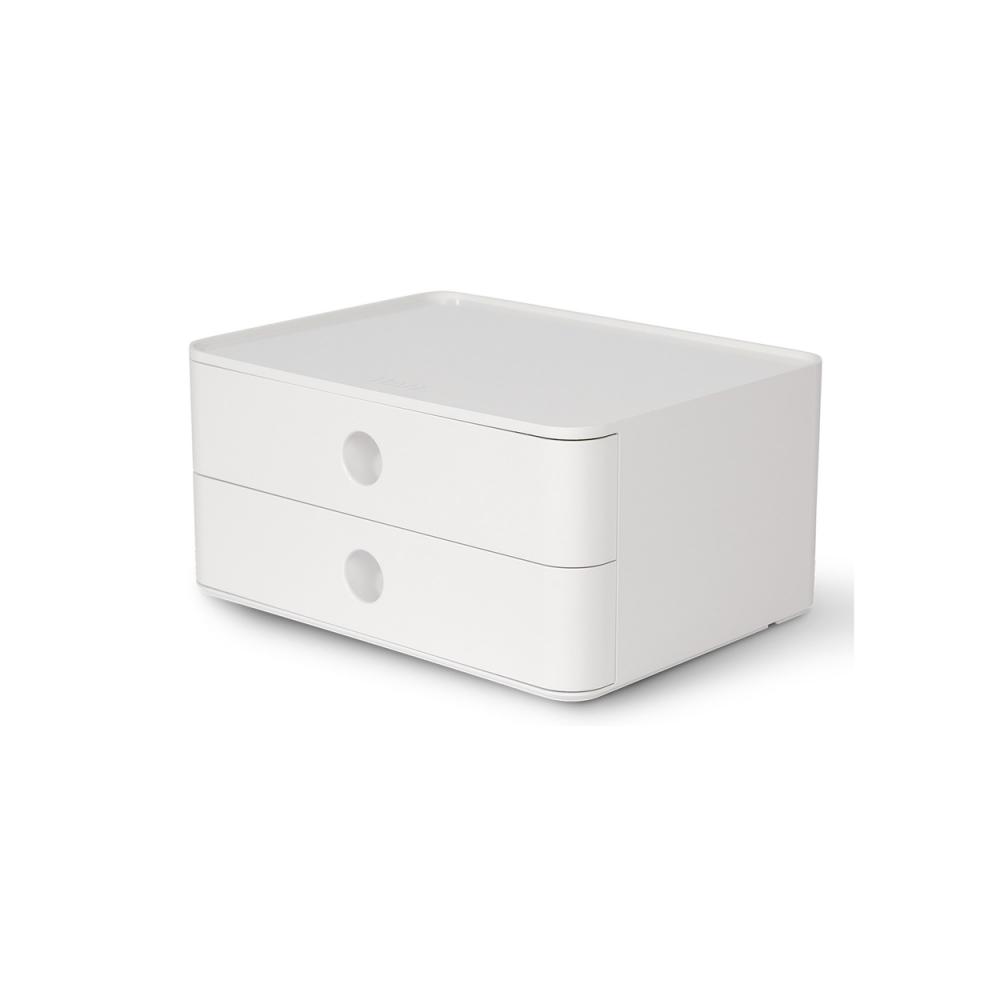 Стеллаж с двумя ящиками и съемными разделителями премиум-качества. Уникальный и инновационный дизайн с глянцевой отделкой для широкого спектра применений: в офисе, на совещаниях или дома. Ящики с плавным ходом и съёмными разделителями для идеальной организации пространства. В основании предусмотрены кабельные каналы. Не скользит благодаря удобным для мебели резиновым ножкам. При необходимости можно складывать друг на друга с другими ящичками Изготовлен из высококачественного, особо прочного АБС-пластика