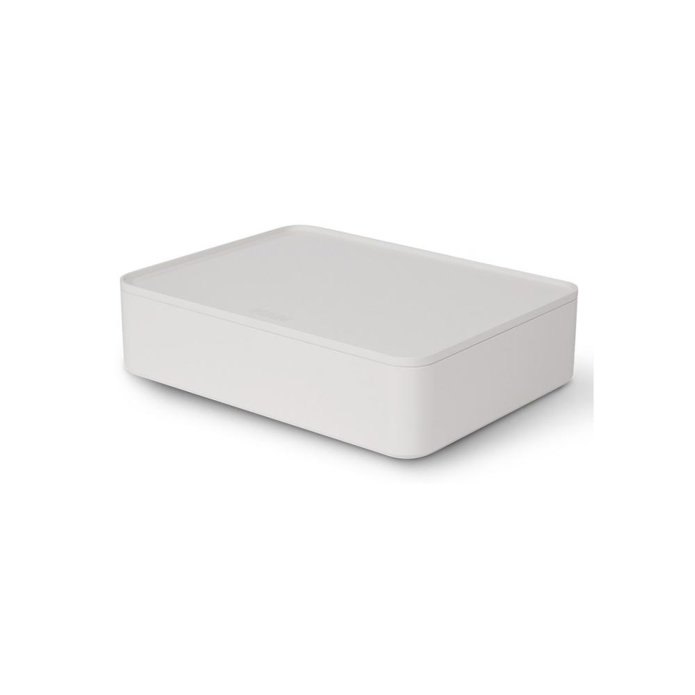 Практичный, штабелируемый ящик для столовых принадлежностей с выдвижным и съемным внутренним лотком и крышкой высочайшего качества. Уникальный и инновационный дизайн с глянцевой отделкой для широкого спектра применений: в офисе, на совещаниях или дома. Крышку можно использовать в качестве подноса или хранить под ящиком для столовых приборов, когда она не используется. Не скользит благодаря удобным для мебели резиновым ножкам. При необходимости можно сложить вместе с несколькими ящичками.