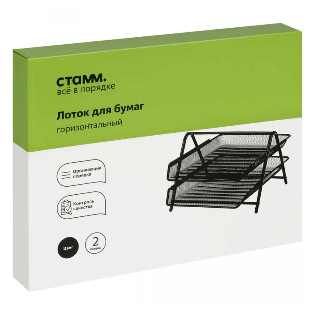 Горизонтальный лоток "СТАММ" с двумя отделениями для бумаг формата А4 поможет организовать функциональное рабочее пространство. Изделие представляет собой сборную конструкцию. Высота 203 мм, глубина - 355 мм, ширина - 295 мм. Лотки могут использоваться отдельно от опоры, после чего их легко и быстро собрать обратно. Выдвижной механизм обеспечивает легкий доступ к бумагам. Прочный металлический корпус не деформируется и не подвержен коррозии. Благодаря сетке внутри не скапливается пыль. Лоток имеет безопасные закруглённые углы и идеально гладкую поверхность без выступающих частей и неровностей. Цвет - черный. Благодаря лаконичному дизайну лоток впишется в любой интерьер.