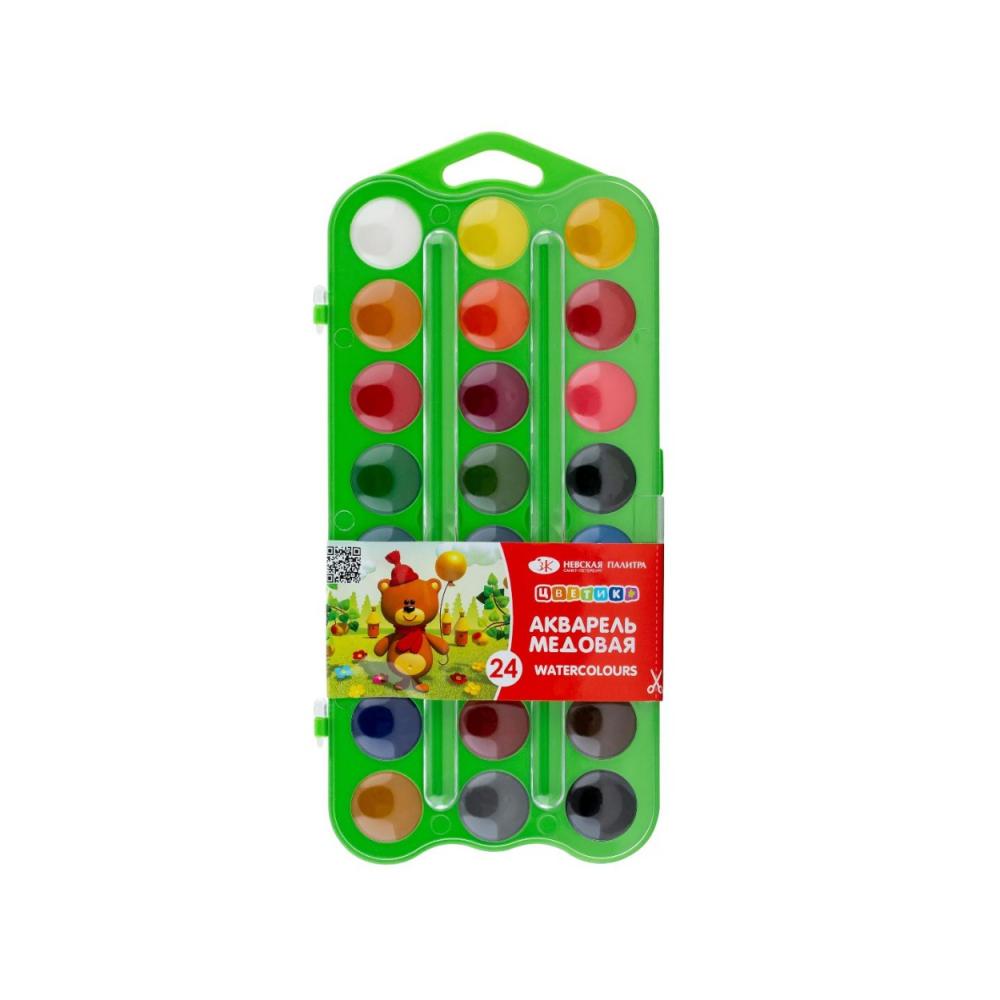 Акварельные медовые краски разрабатывались с учетом высоких требований к качеству и безопасности. Краски легко берутся на кисть, смешиваются и разносятся по бумаге. Рисунок остается ярким даже после высыхания. Крышку пластиковой упаковки можно использовать в качестве палитры. Краски безопасны при попадании на кожу ребенка, легко отстирываются и смываются с любых поверхностей. Состав: белая, желтая, оранжевая, алая, розовая, зеленая, изумрудная, синяя, фиолетовая, охра, коричневая, черная, лимонная, желтая темная, оранжево-красная, карминовая, лиловая, травяная зеленая, зеленая темная, голубая, бирюзовая, синяя темная, красно-коричневая, серая.