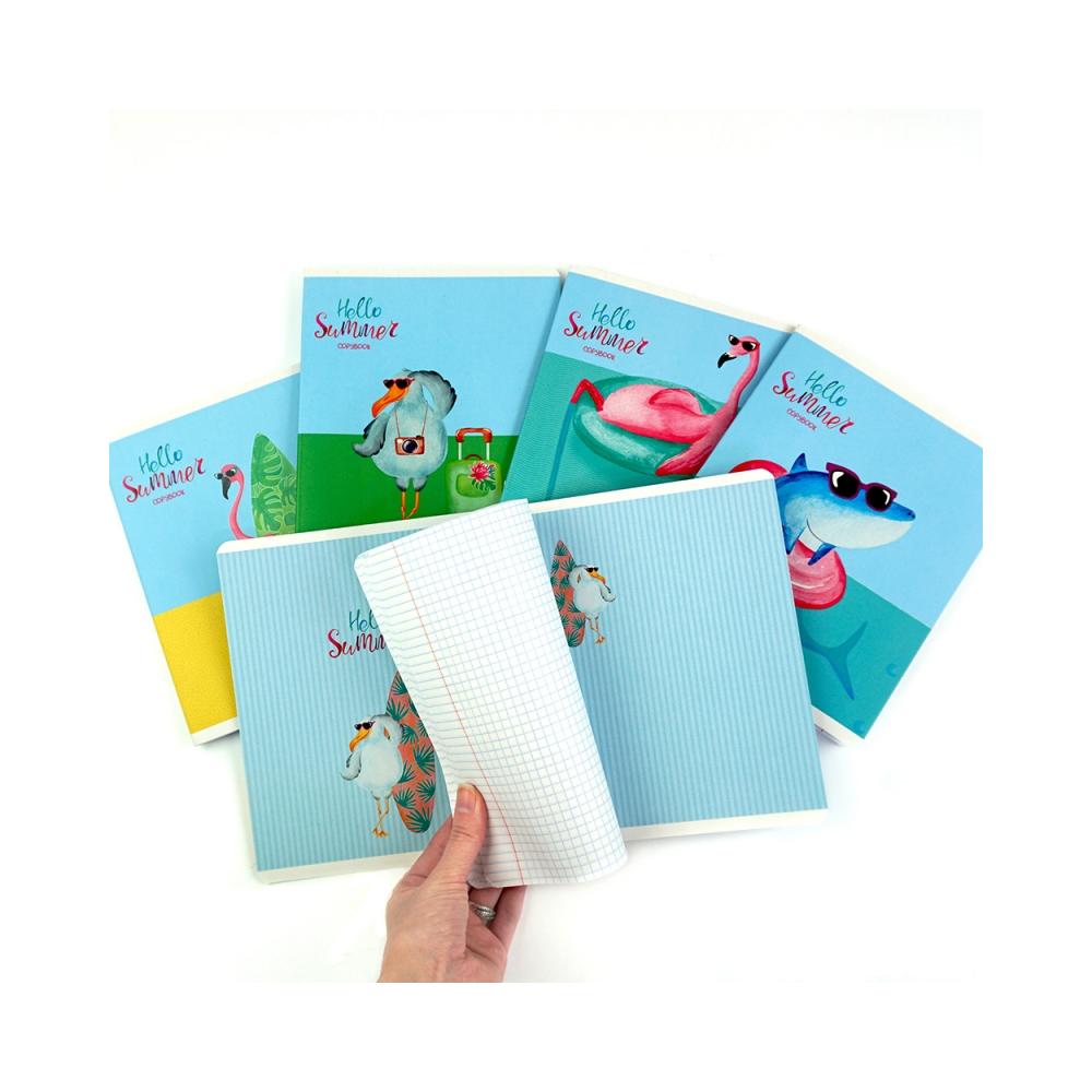 Тетрадь общая “Hello summer” 48 листов, А5 формата “Канц-Эксмо” – незаменимый инструмент для ежедневных записей и конспектов. Рекомендована для использования школьниками средних и старших классов. Тетрадь может быть красивой и яркой не только снаружи, но и внутри! Сочетание цветовой палитры, с мягкой матовой поверхностью на ощупь, подчеркивает оригинальность и стильность всей коллекции. Обложка изготовлена из высококачественного мелованного картона, с полноцветным запечатанным оборотом в тон. Внутренний блок – белая офсетная бумага 60 г/м2, . Линовка: клетка с полями. Крепление: скрепка. Цвет обложки: ассорти.
