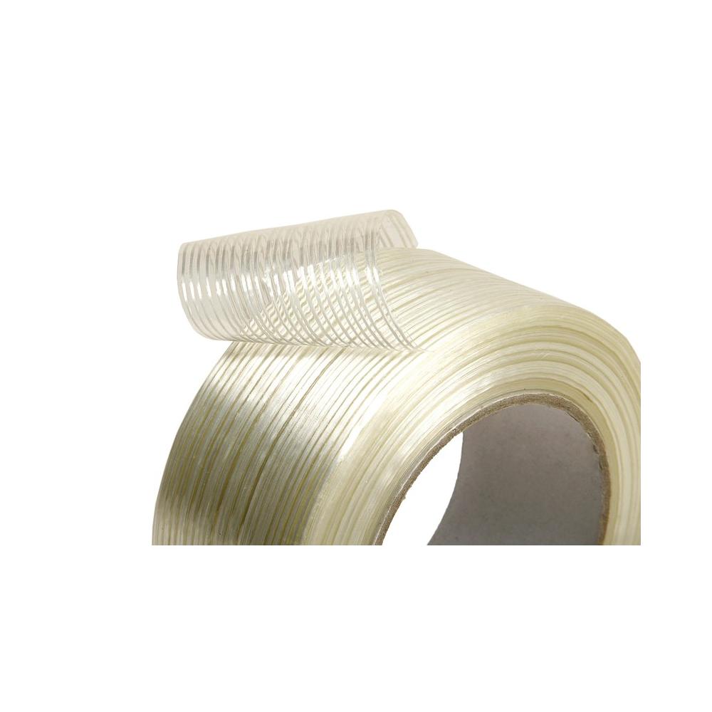 Клейкая лента армированная стекловолокном. Ширина: 50 мм. Длина ленты: 50 м. Плотность: 130 мкм. Цвет белый. Односторонняя армированная клейкая лента с продольно-поперечным расположением нитей. Предназначена для соединения элементов упаковки, несущих повышенные нагрузки; скрепление изделий в связки; укрепление грузов на палете; фиксация при транспортировке элементов со щадящей поверхностью.